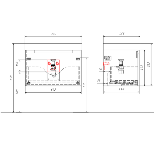 Подвесная тумба Ванкувер 70 оснащена одним ящиком с механизмом мягкого закрывания и тщательно организованным внутренним пространством с отделкой под дерево. Лаконичный фасад крашеный в белый цвет с интегрированной ручкой-зацепом подчеркивают чистоту форм и делают использование особенно удобным. Мебельный умывальник с декоративной вкладкой подчеркивает современный характер коллекции, а оптимальная глубина чаши обеспечивает комфортное ежедневное использование.