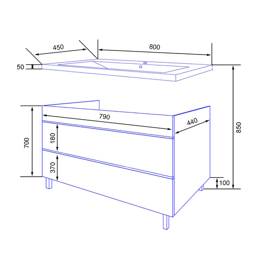 - Тумба Azario Эстима 80/2Н цвет "графит" с раковиной из литьевого мрамора Астория 80.